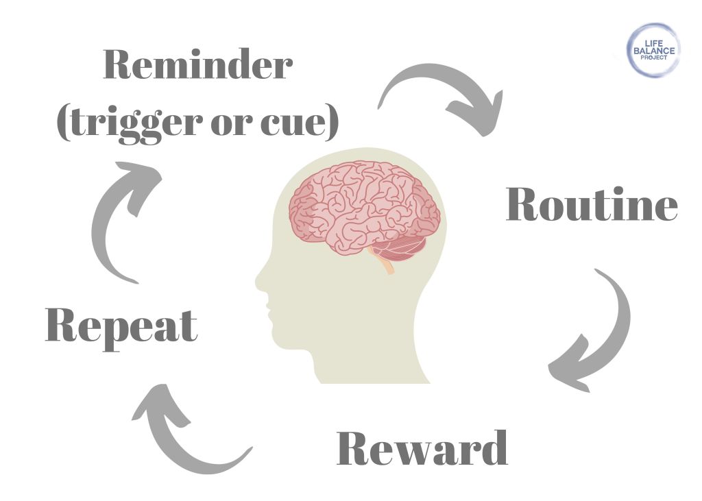 This model can help us to tackle the difficult task of change. Understanding the mechanism gives you choices to make long-lasting change. Once you are aware of your trigger (or cue), maybe try to replace the routine (habit) with a healthier choice. Create a system of change rather than focussing on short-term goals, think about rewarding yourself. Repetition is key for habit formation.
